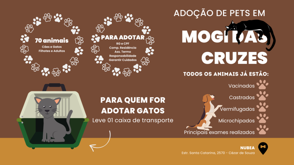 A Prefeitura de Mogi das Cruzes, por meio do Núcleo de Bem Estar Animal (Nubea) da secretaria de Meio Ambiente e Proteção Animal, realizará no próximo domingo (7), das 10h às 15h, mais uma edição do Evento de Adoção de pets. A ação será no Nubea, no distrito de Cezar de Souza. Ao todo, 70 […]