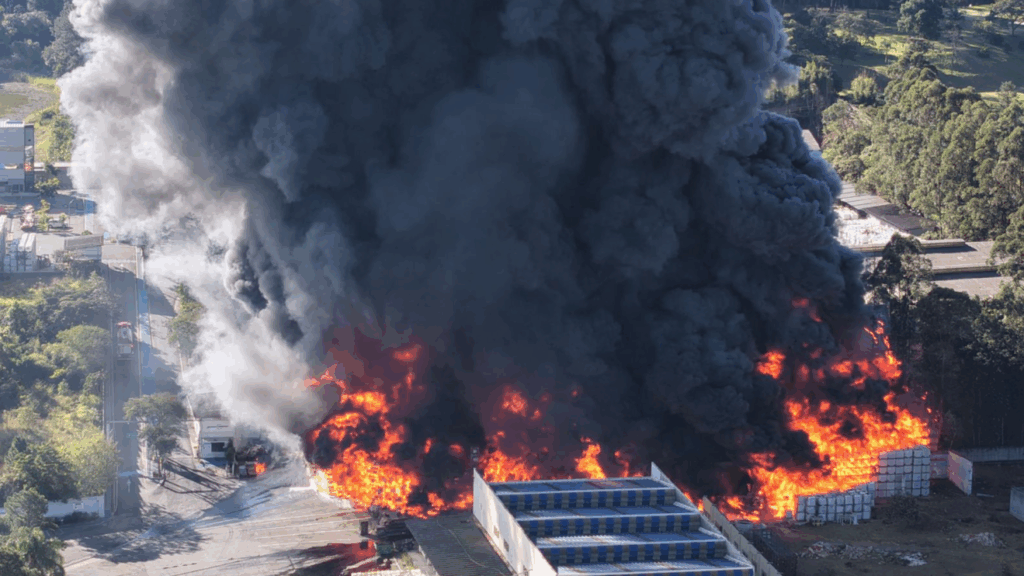 Incêndio de grandes proporções atinge indústria química em Guarulhos